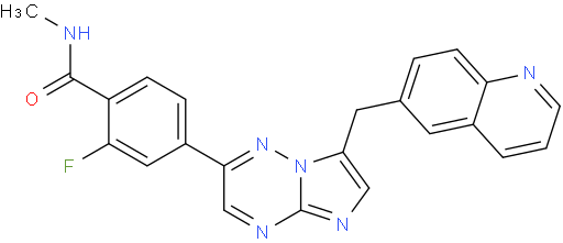 | 中文名稱 | 2-氟-N-甲基-4-[7-[(喹啉-6-基)甲基]咪唑并[1,2-b]-[1,2,4]三嗪-2-基]苯甲酰胺 |